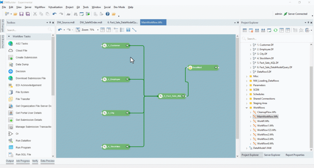 Bring your data processes together seamlessly by combining data flows and models into workflows. Automatically schedule and run these workflows, keeping your data warehouse up-to-date without any manual effort. Enjoy a fully automated, self-sustaining system that works on its own.